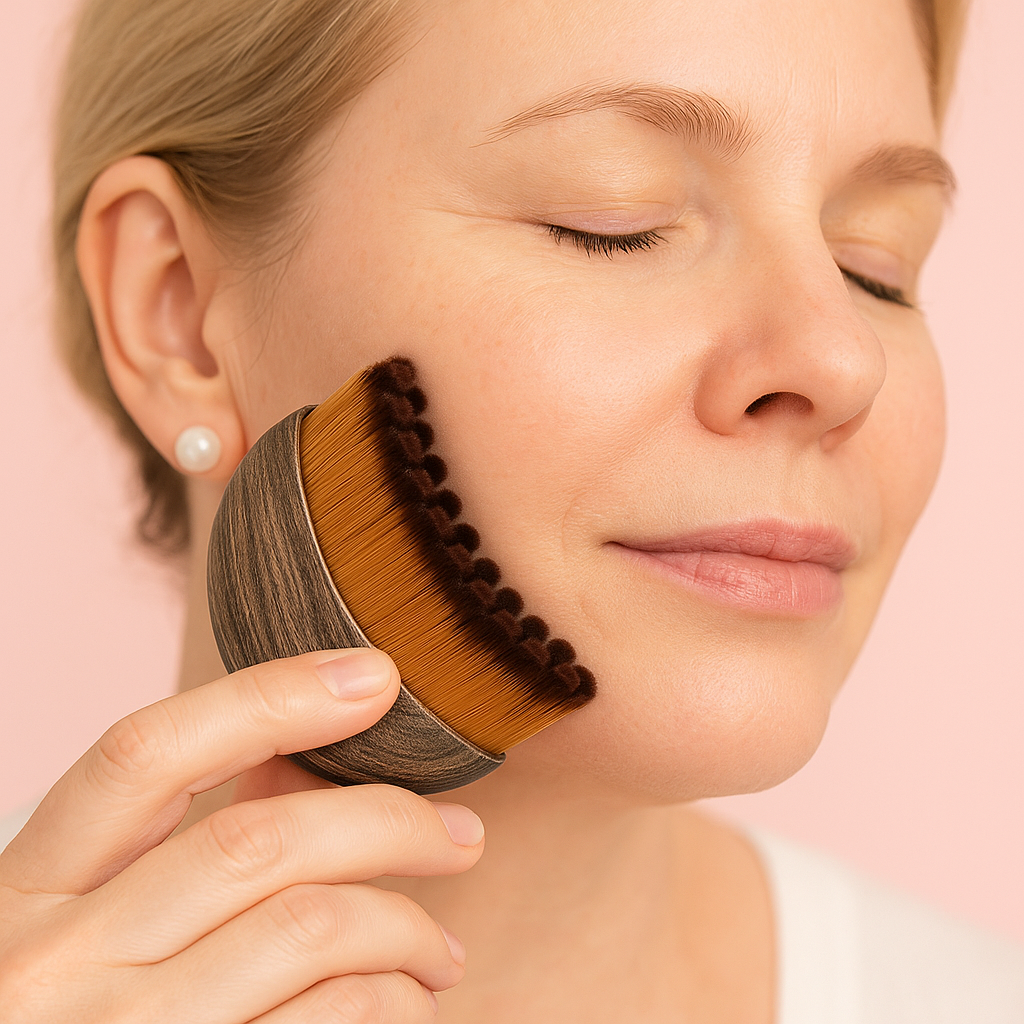 The brush’s contoured shape glides along your jawline, cheeks, and neck, gently stimulating lymphatic flow. Ultra-soft bristles massage the skin, helping reduce puffiness, boost circulation, and enhance your natural glow in just a few minutes a day.